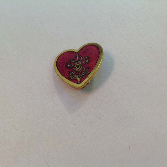 Vintage Small Enamel Heart-Shaped Boy Scouts of America Pin Be Prepared Eagle Fleur-de-Lis