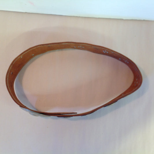 Vintage Tan Women's Oversize Belt Convex Metal Buckle Western Style Cloverleaf Circle Studs 38