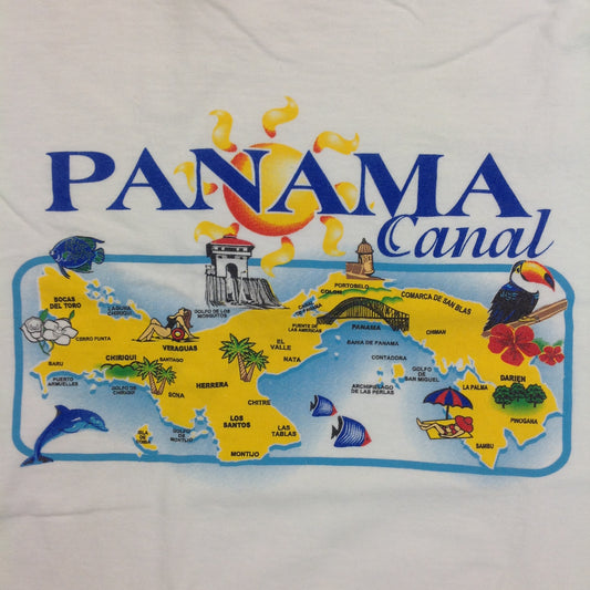 Vintage Tropic Plus Cotton Souvenir White Men's Small Short-Sleeve Panama Canal Points of Interest T-Shirt