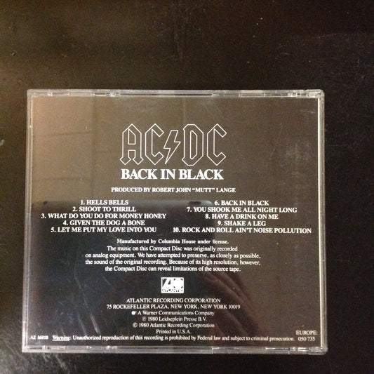 CD A216018 AC/DC Back In Black Atlantic Hard Rock Classic