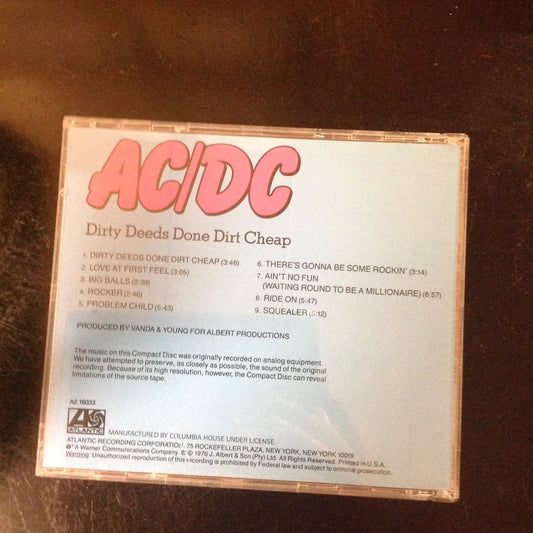 CD A216033 AC/DC Dirty Deeds Done Dirt Cheap Atlantic Hard Rock Classic