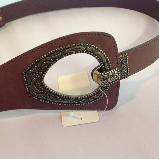 Large Dark Brown Coldwater Creek Hipslung Etched Belt Bronze Hook Buckle with Tags 13