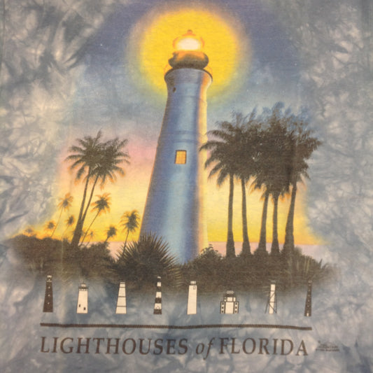 Souvenir Slate Blue Cloudy Tie-Dye T-Shirt Lighthouses of Florida