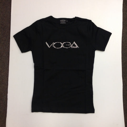 Souvenir Authentic VOGA Italia Drink IN Style Black Women's Small T-Shirt with Rhinestone Logo