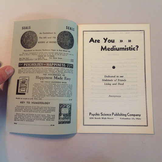 Vintage 1932 Metaphysical Booklet Are You Mediumistic? Learn How! Develop Your Psychic Power Psychic Science Publishing