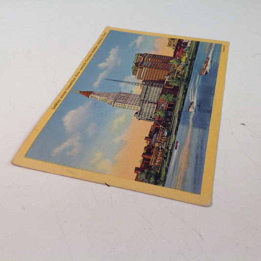 Vintage 1945 Curteich Color Postcard Looking Across Connecticut River Towards Travelers Building Insurance Capital of the World Hartford Connecticut