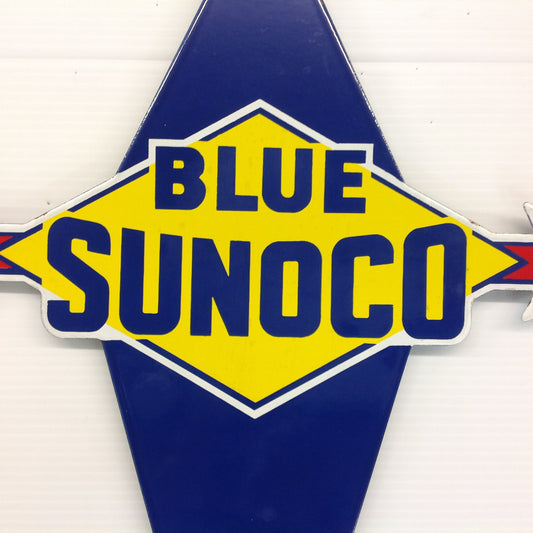 Vintage 1950's-60's Porcelain Enamel Gas Pump Plate Badge Blue Sunoco