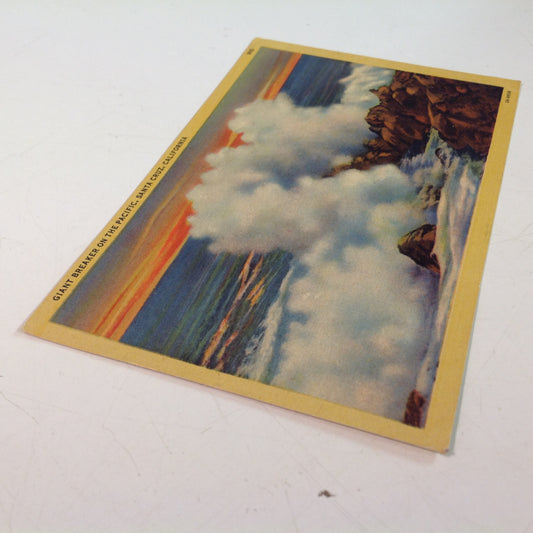 Vintage 1957 Pictorial Wonderland Art-Tone Souvenir Color Postcard Cliff Drive Giant Breaker Santa Cruz California
