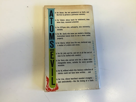 Vintage 1962 Mass Market Paperback Atoms and Evil Robert Bloch Fawcett Gold Medal s1231 First Printing