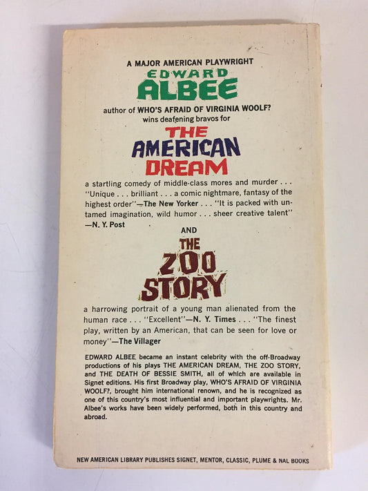 Vintage 1961 Mass Market Paperback Two Plays By Edward Albee The American Dream/The Zoo Story