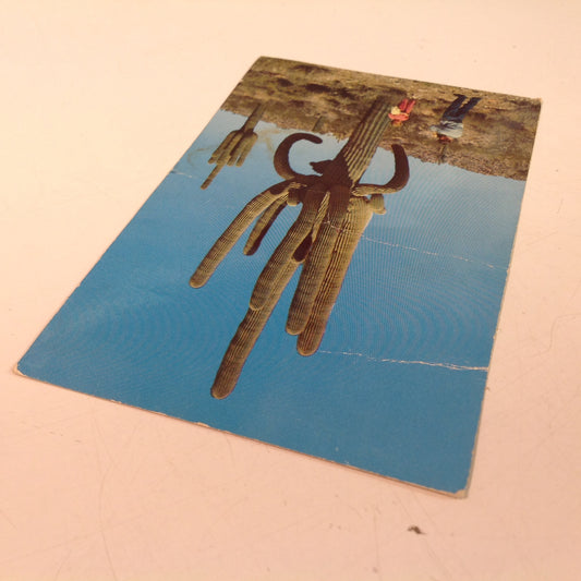 Vintage 1961 Souvenir Color Postcard Jim Sexton Photo Desert Giants Children at Base of Giant Saguaro Cactus Arizona