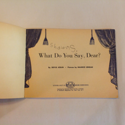 Vintage 1964 Paperback What Do You Say, Dear? Sesyle Joslin Maurice Sendak Scholastic Book Services First