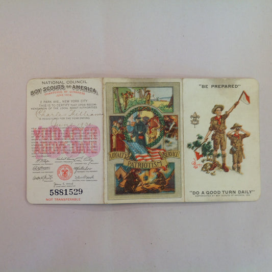 Vintage 1935 Boy Scouts of America BSA Membership Card with Sleeve Be Prepared Do A Good Turn Daily
