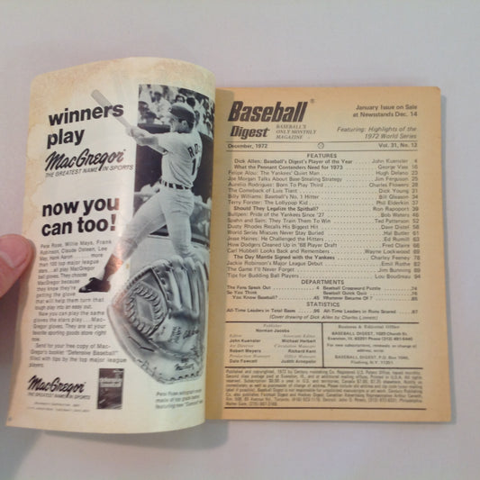 Vintage Dec 1972 Baseball Digest Magazine Dick Allen: 1972 Player of the Year