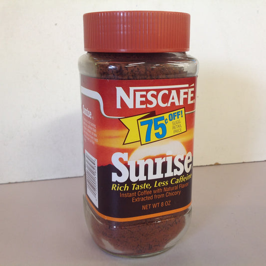Vintage 1990's NOS Nescafe Sunrise Instant Coffee with Chicory Extract 8 oz Jar Unopened
