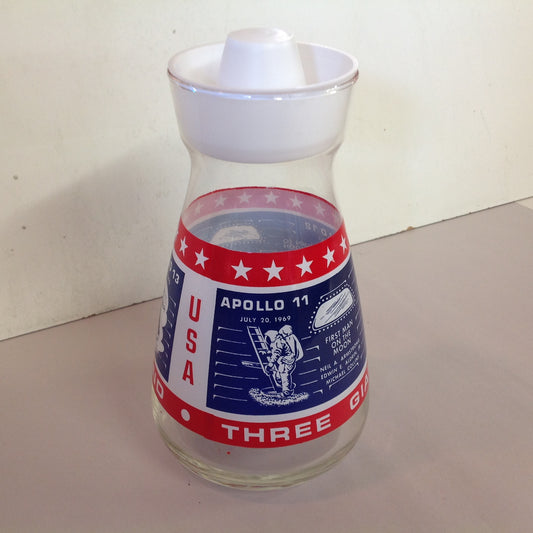 Vintage NOS Libbey Glass 1969 Commemorative Apollo 11 12 13 Carafe Blue Red USA Three Giant Leaps for Mankind
