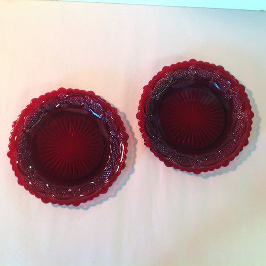 Vintage 1980 Avon 1876 Cape Cod Collection Dessert Plates Pair Red Sandwich Glass Unused with Original Box