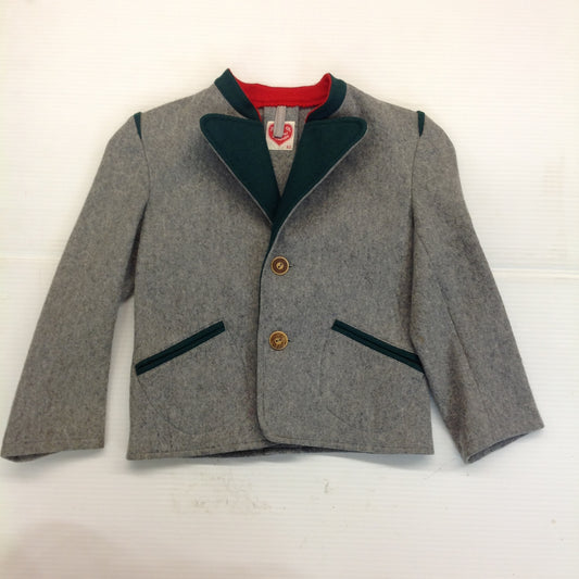 Vintage 2Pc Child's Weiner Werkstatte Lederhosen and Jacket Gray Red Green Wool Suede