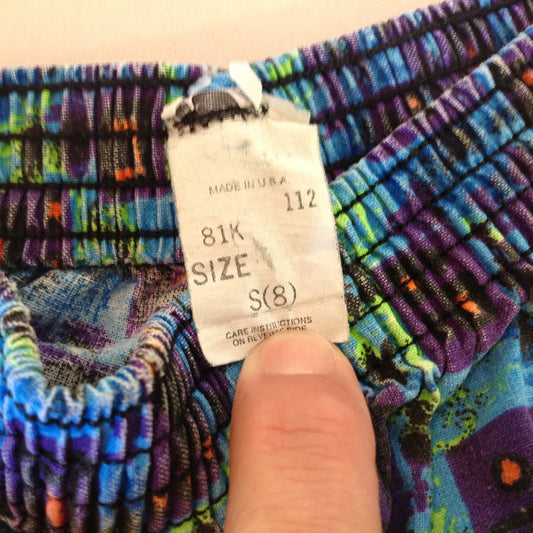 Vintage 1980's Child's Geometric Abstract Blue Purple Orange Shorts Size S 8