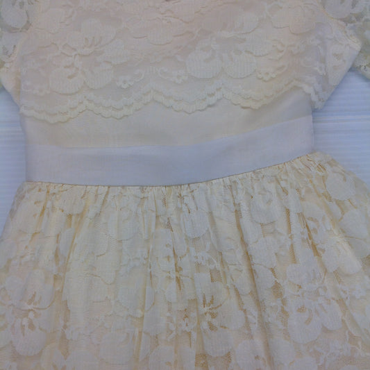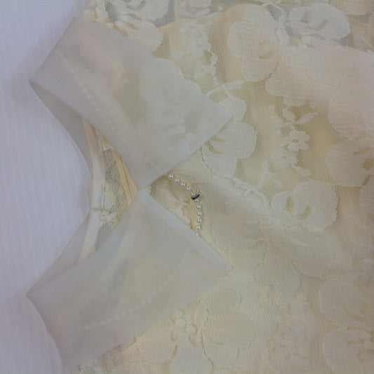 Vintage 1980's Hollywood Brand Girls Cream White Lace Beaded Necklace Communion Dress