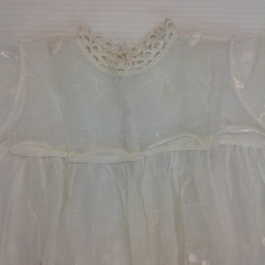 Vintage Infant Sheer White Muslin Floral Embroidered Christening Dress