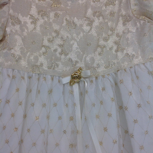 Vintage Child's Dress Cream White Gold Thread Rose Ribbon Belt