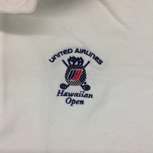 Vintage 1996 Authentic Divots White Cotton Men's Medium Souvenir United Airlines Hawaiian Open Golf Shirt