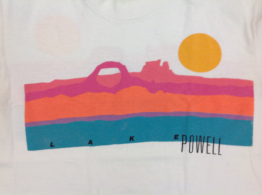 Vintage Stedman Super Hi-Cru Men's Medium (38-40) White Short Sleeve Souvenir T-Shirt Pastel Sunset Lake Powell Utah Arizona