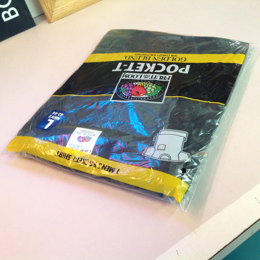 Vintage 1998 NOS Fruit of the Loom Men's Black Large Pocket 50/50 T-Shirt