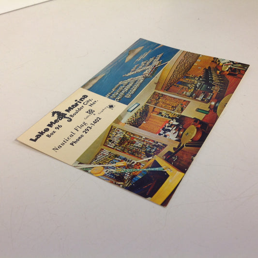 Vintage 1960's Souvenir Color Postcard Lake Mead Marina and Nautical Flag Gallery & Grogshop Boulder City Nevada
