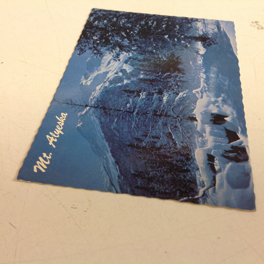 Vintage Continental Card Scalloped Edged Color Postcard Mount Alyeska in Moonlight Girdwood Valley Julian Maule Photo Anchorage Alaska
