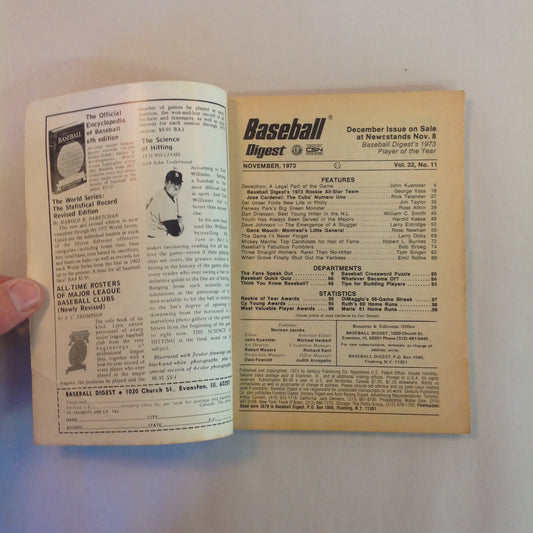Vintage Nov 1973 Baseball Digest Magazine 1973 All-Star Rookie Team Jose Cardenal: The Cubs' Numero Uno