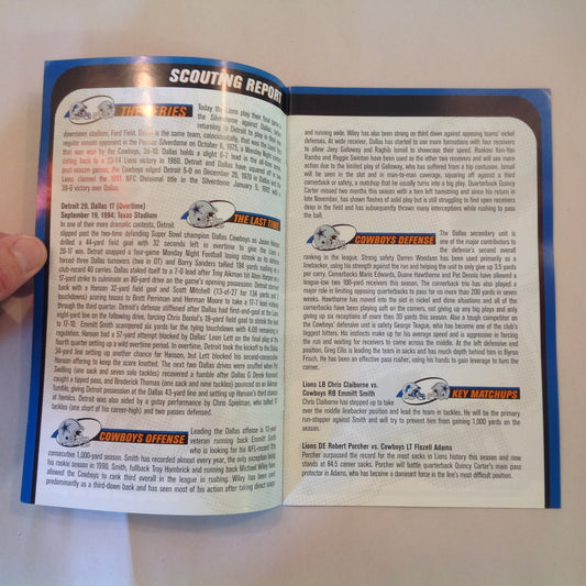 Vintage January 6 2002 Detroit Lions Presents: Kickoff Playbook Pontiac Silverdome 1975-2001 Lions Vs. Dallas Cowboys