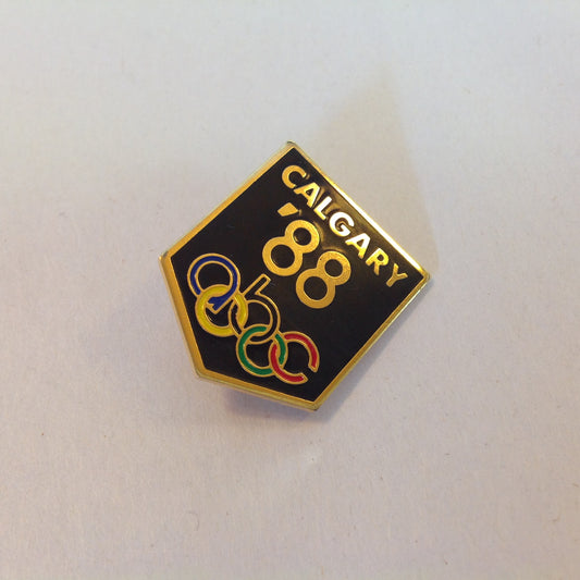 Vintage ABC Calgary 1988 XV Olympic Winter Games 88 Black Shield Promotional Pin