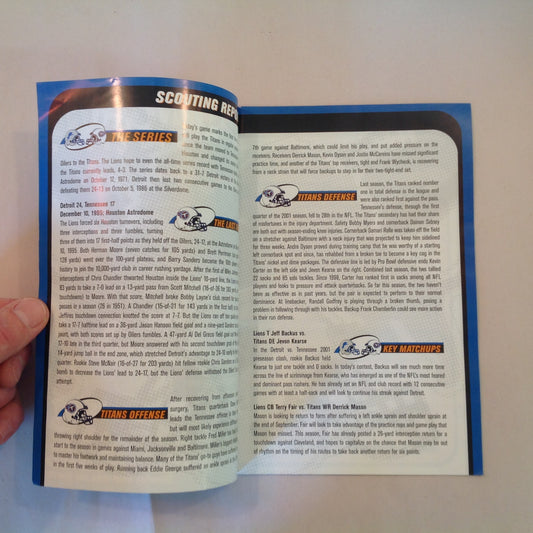 Vintage October 21 2001 Detroit Lions Presents: Kickoff Playbook Lions Vs. Tennessee Titans