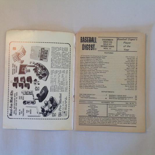 Vintage Nov 1971 Baseball Digest Magazine Bobby Murcer: The Yankees' Quiet Hero