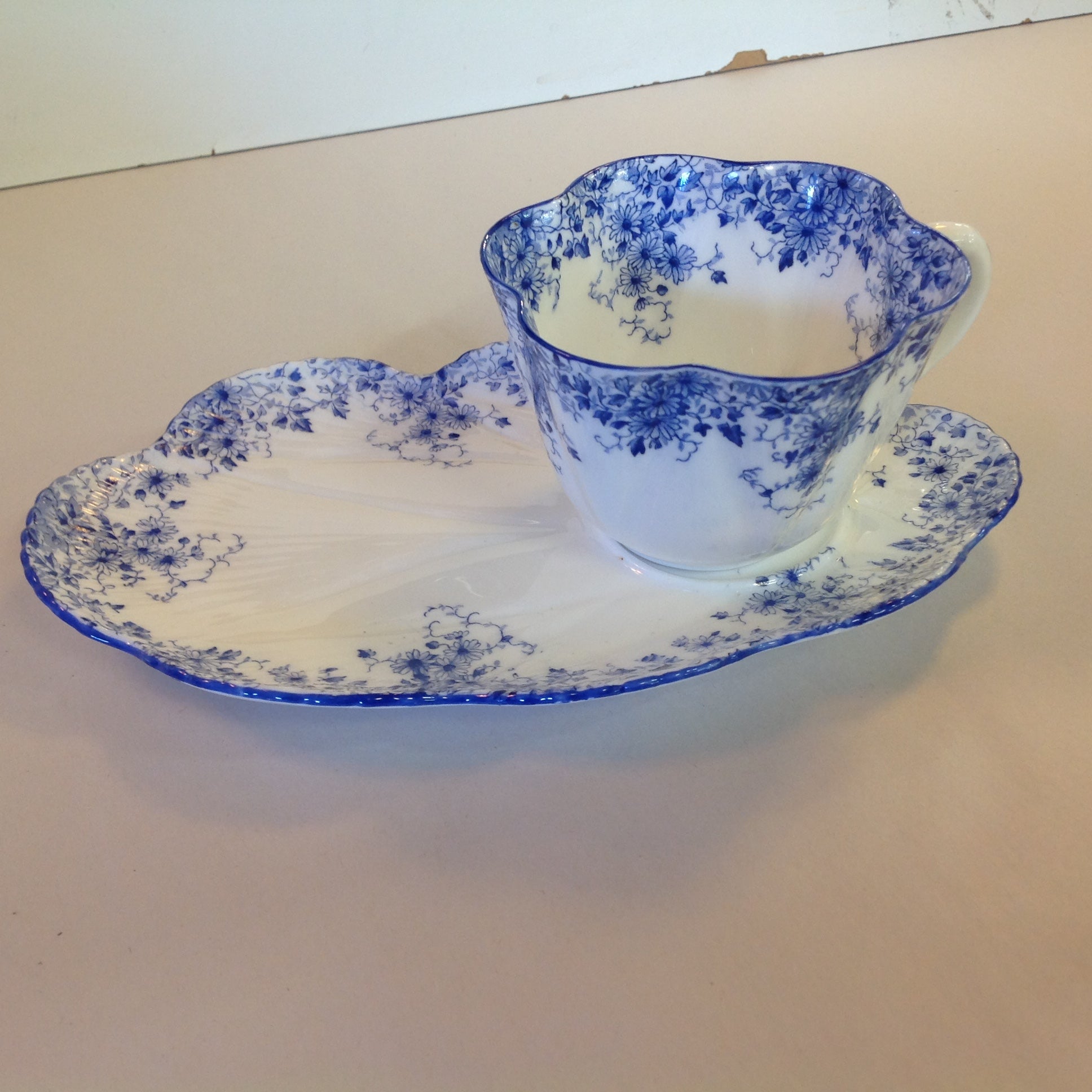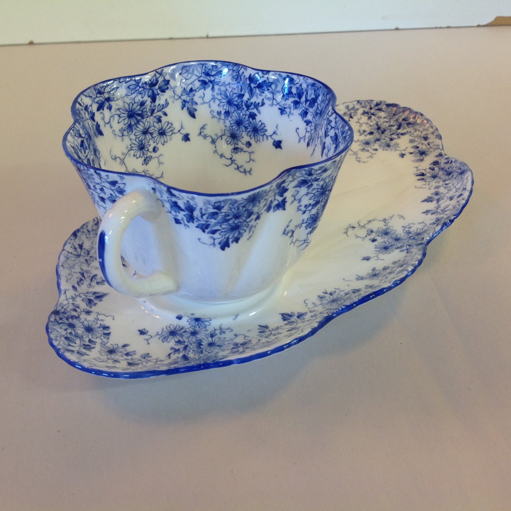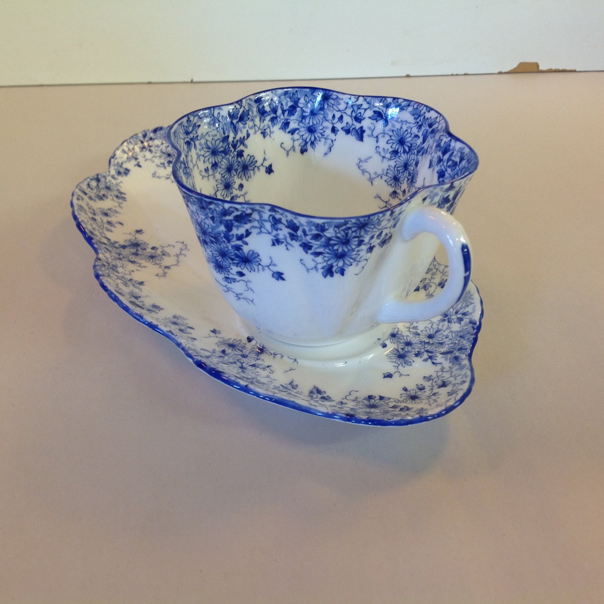 Antique Shelley Dainty Blue 2 Piece Tea Set Cup Tennis Plate