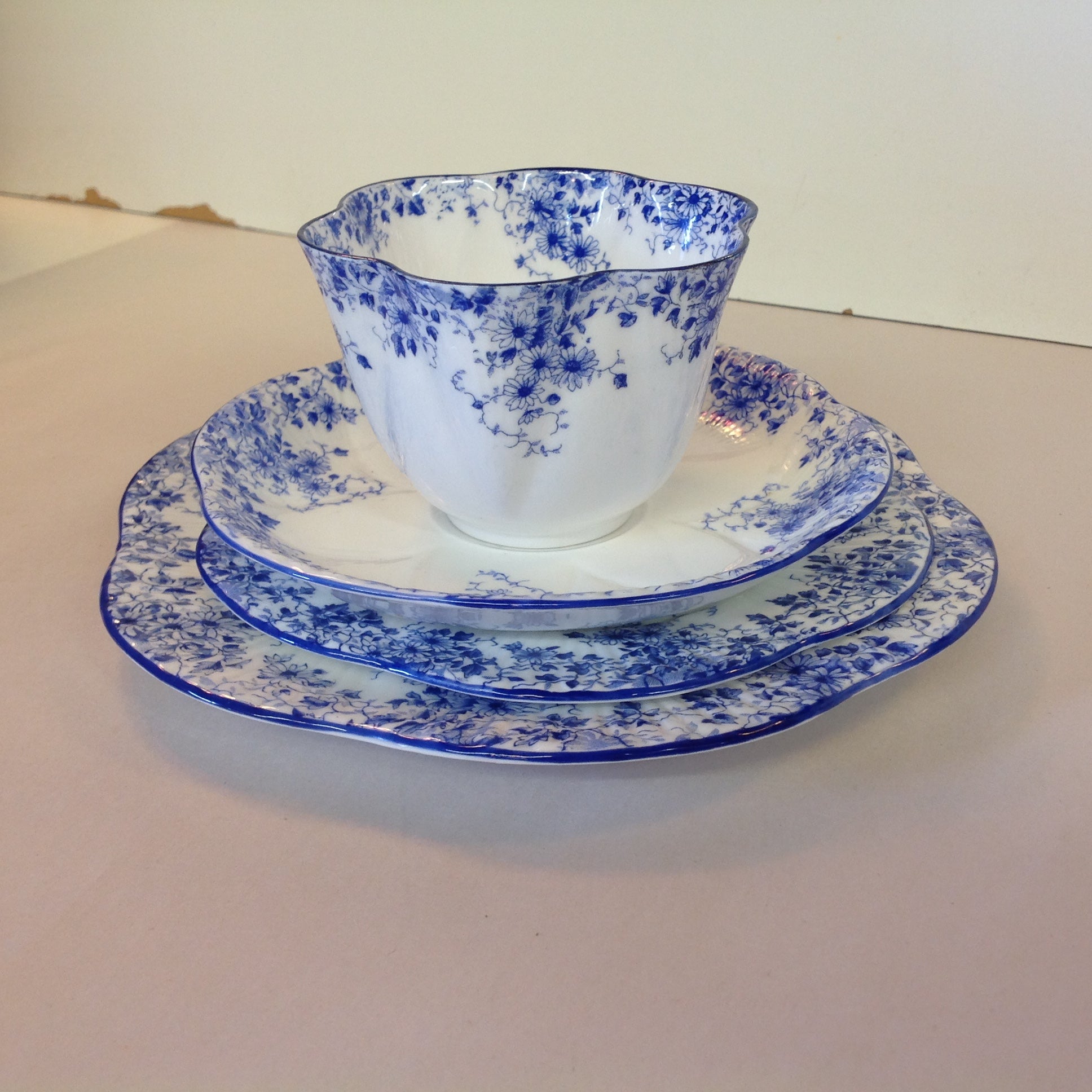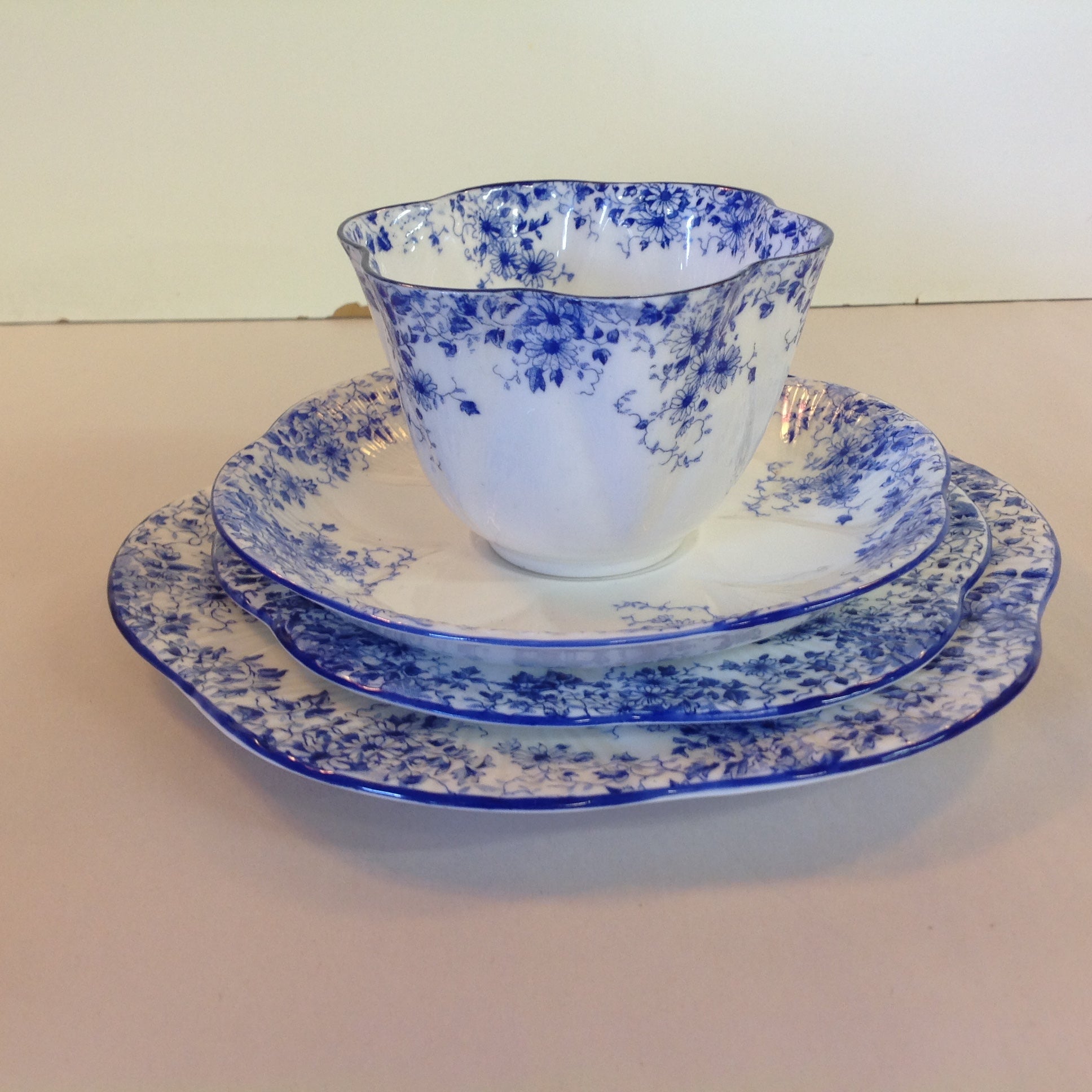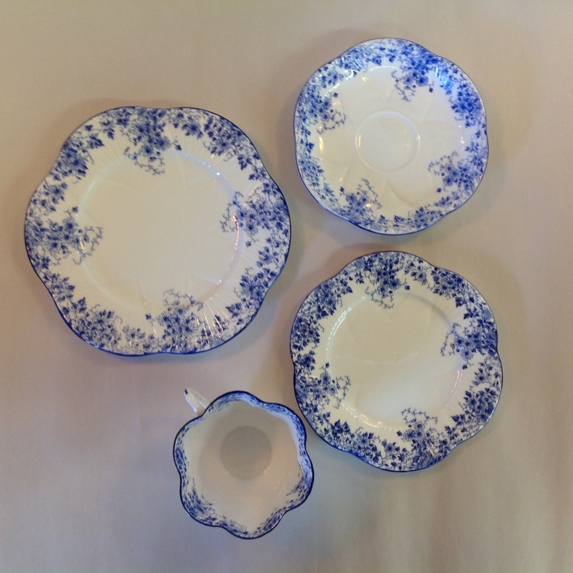 Antique Shelley Dainty Blue Fine Bone China 4 Piece Tea Suite Cup Saucer Tea Plates