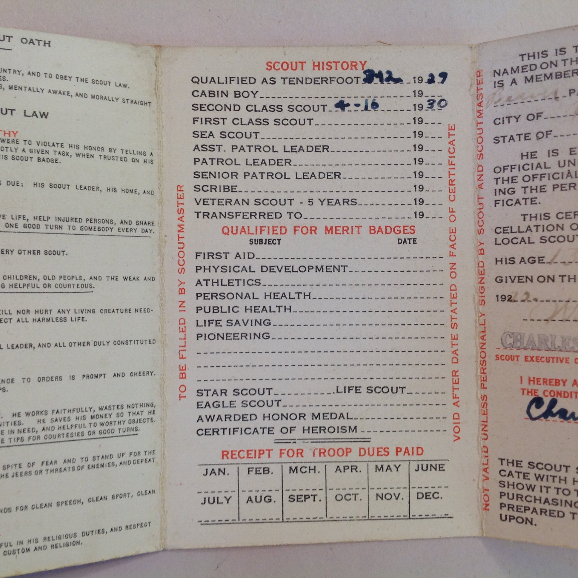 Vintage 1935 Boy Scouts of America BSA Membership Card with Sleeve Be Prepared Do A Good Turn Daily