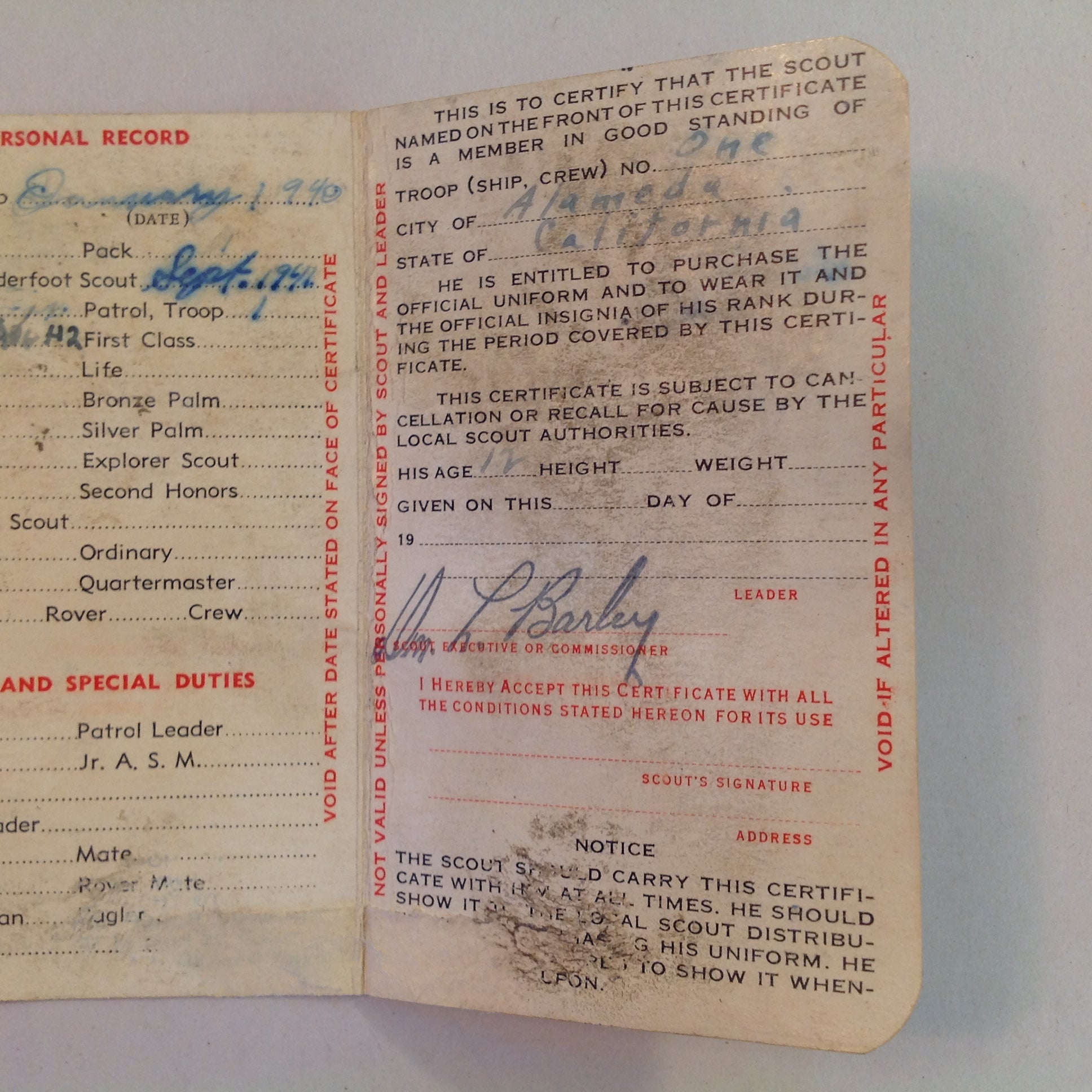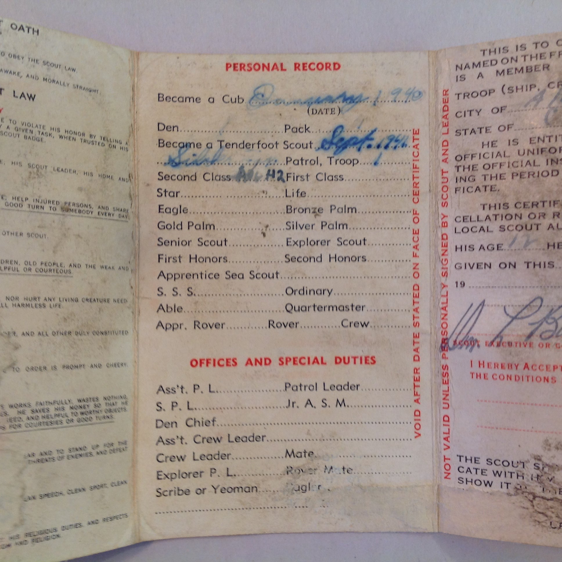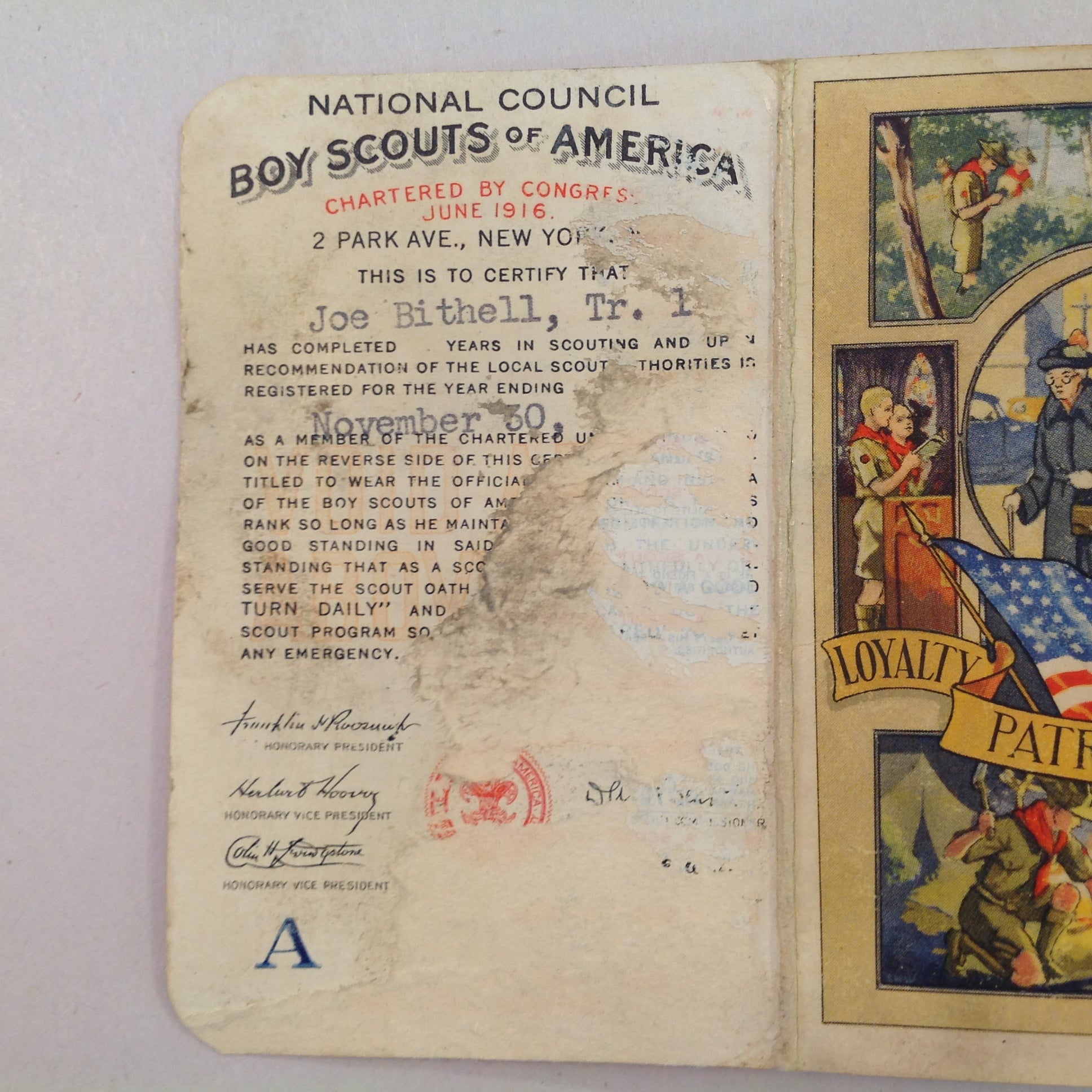 Vintage 1935 Boy Scouts of America BSA Membership Card with Sleeve Be Prepared Do A Good Turn Daily The Scouting Trail