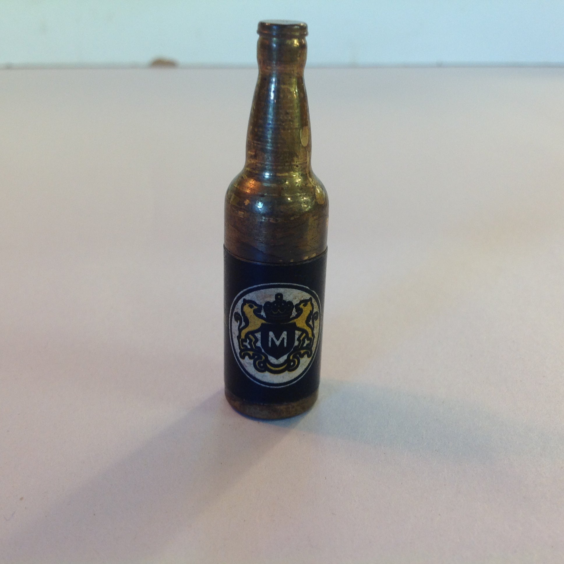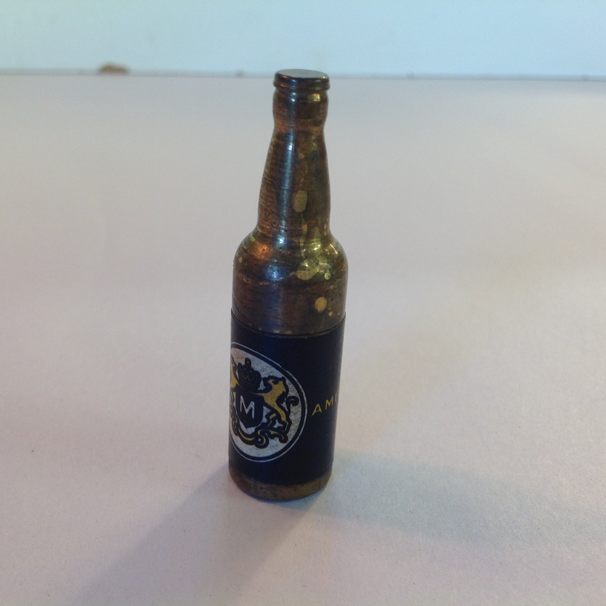 Vintage 1940's KEM Novelty Beer Bottle Lighter Unused Unfired Royal Amber Herald Rampant Lions