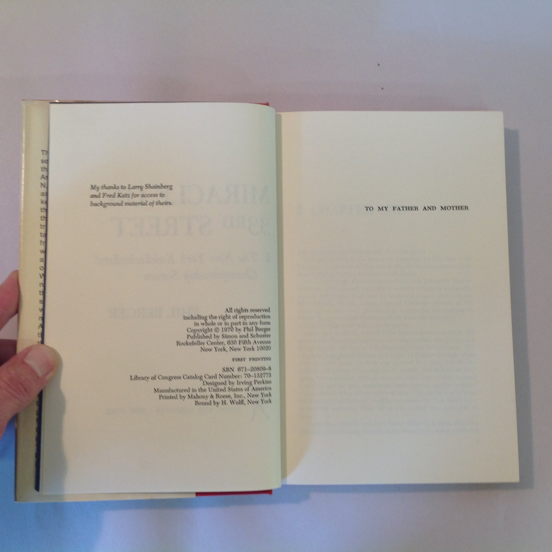 Vintage 1970 Hardcover Miracle On 33rd Street: The N.Y. Knickerbockers' Championship Season Phil Berger First Ed
