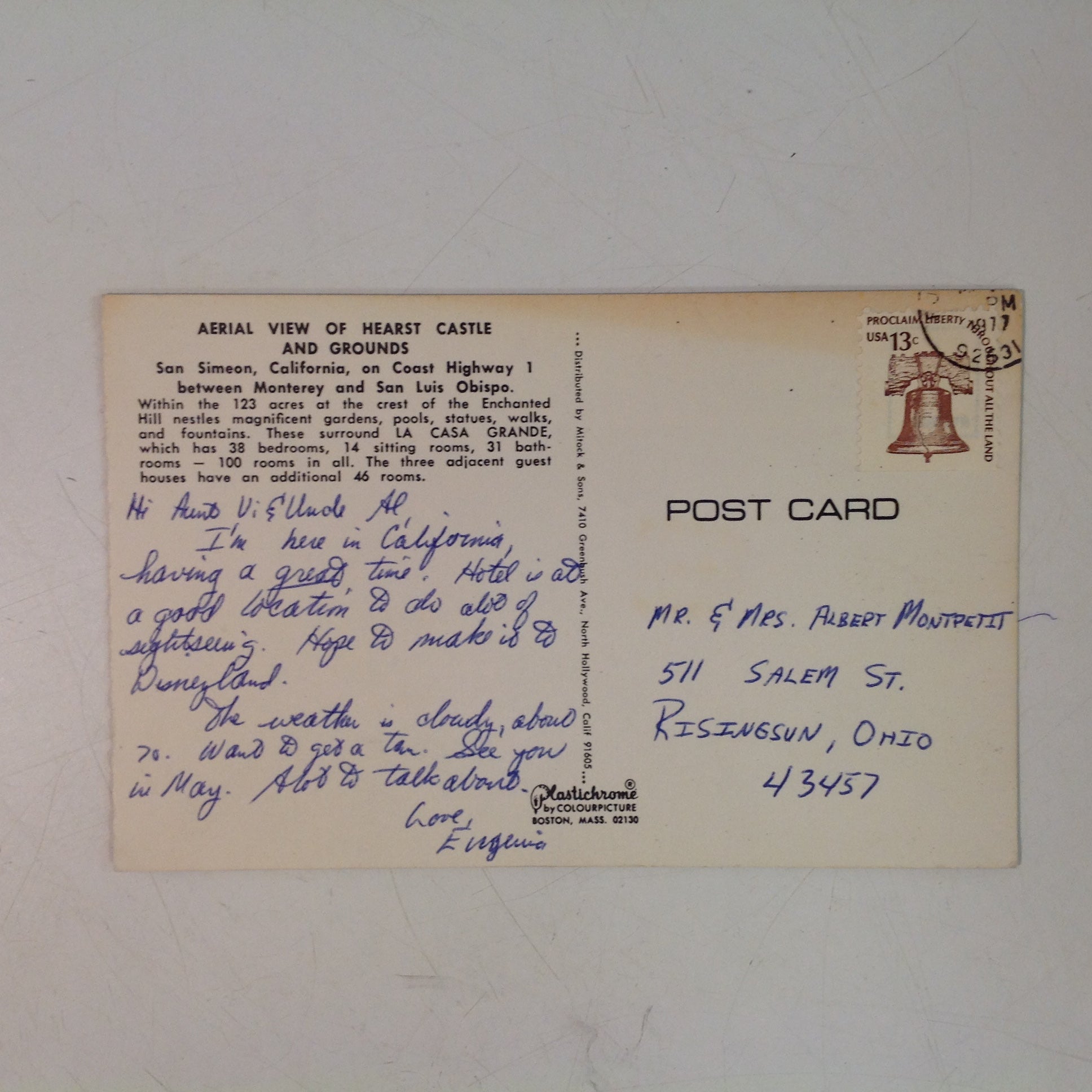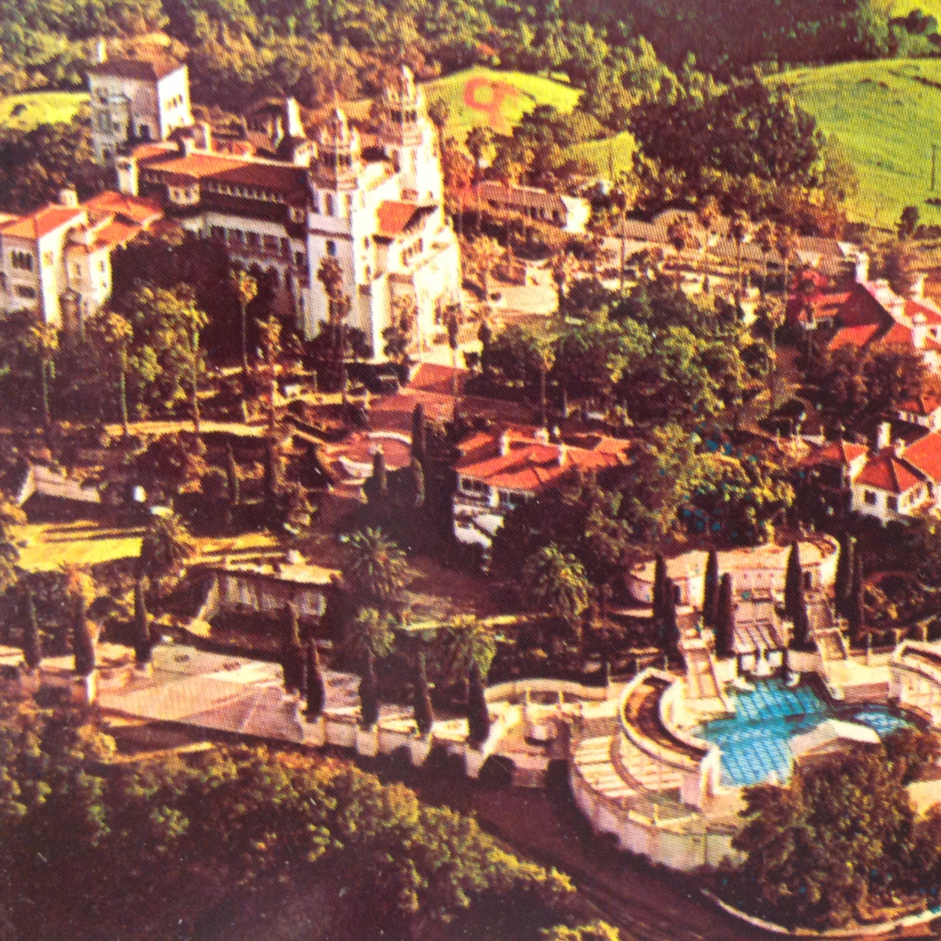 Vintage 1977 Plastichrome by Colourpicture Aerial View of Hearst Castle and Grounds Southern California America's Scenic Wonderland