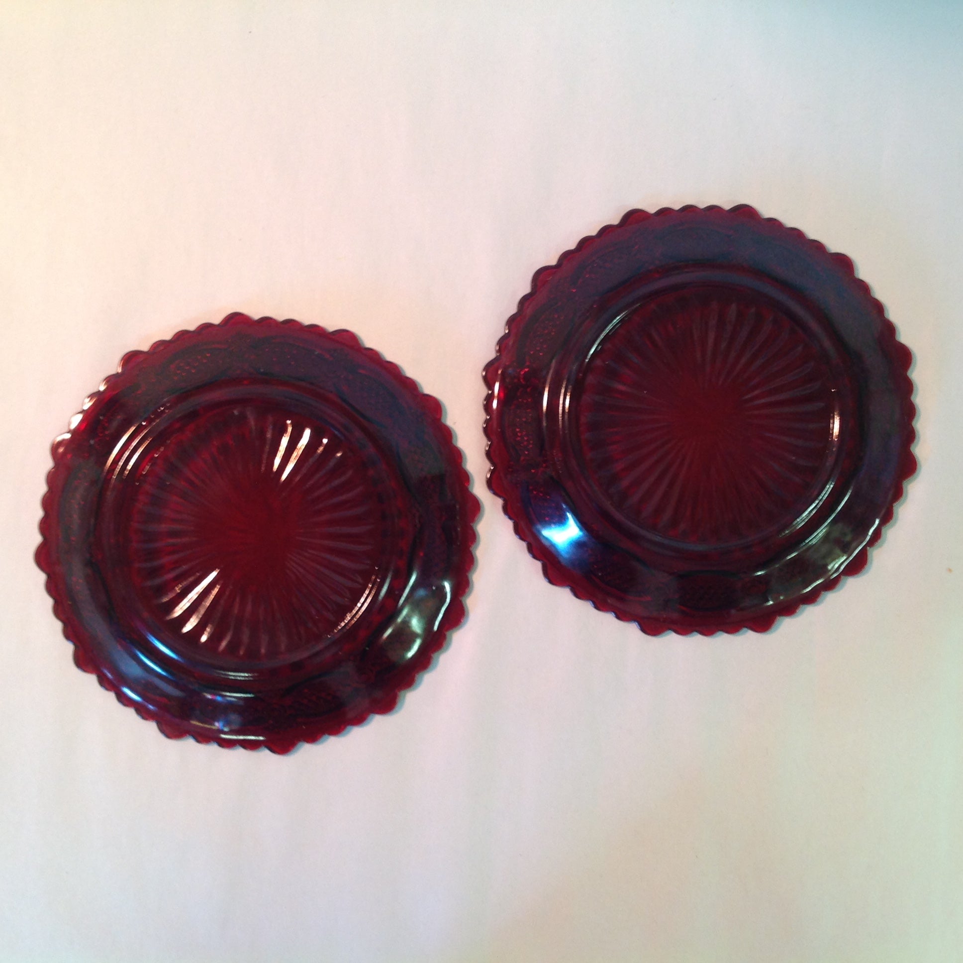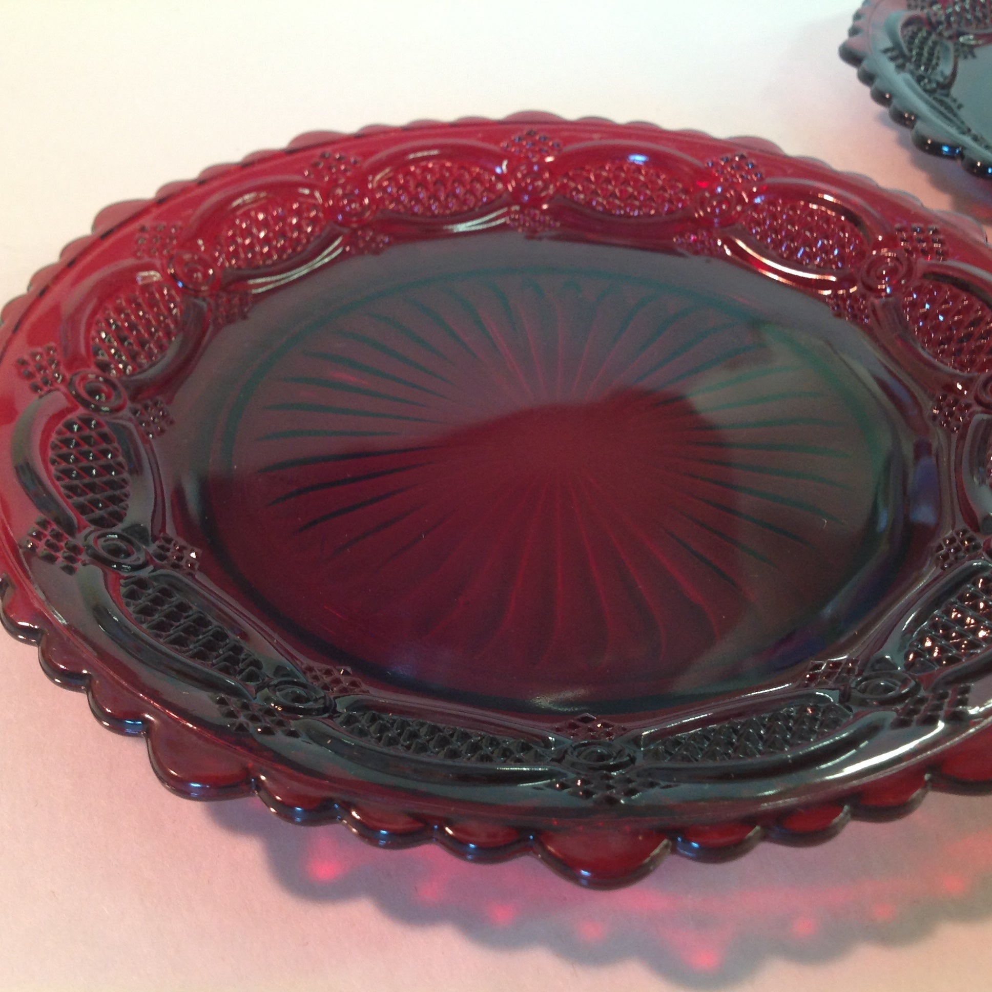 Vintage 1980 Avon 1876 Cape Cod Collection Dessert Plates Pair Red Sandwich Glass Unused with Original Box