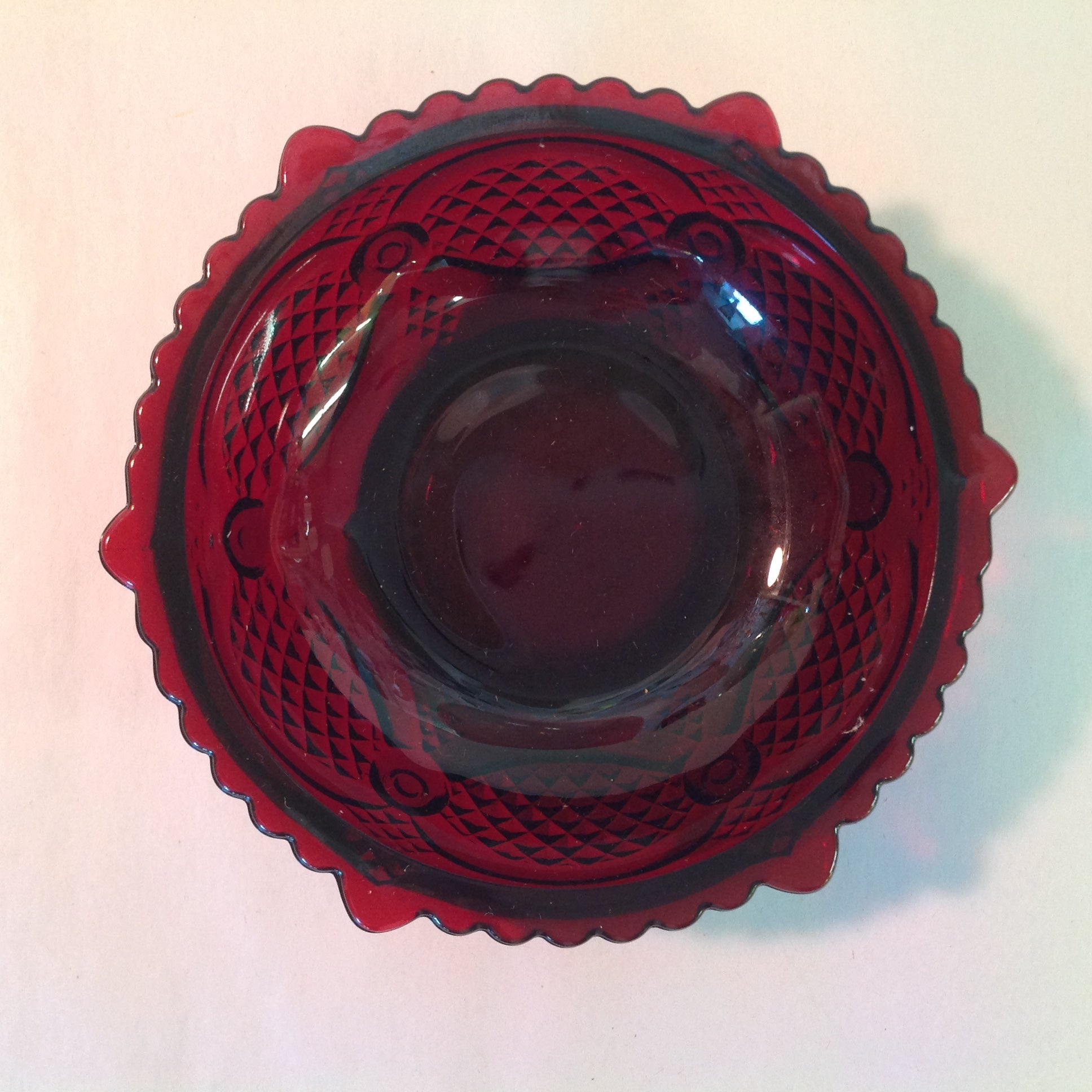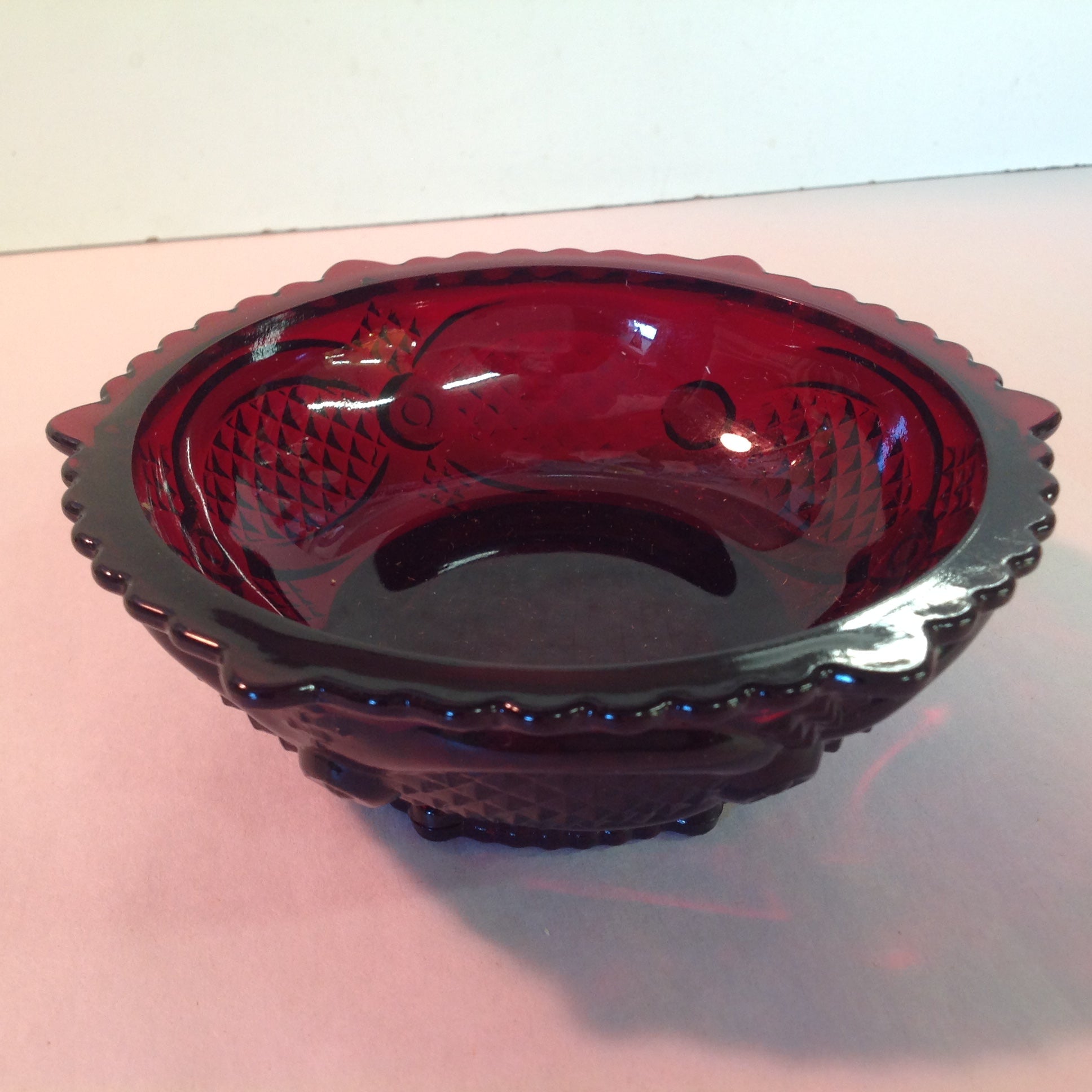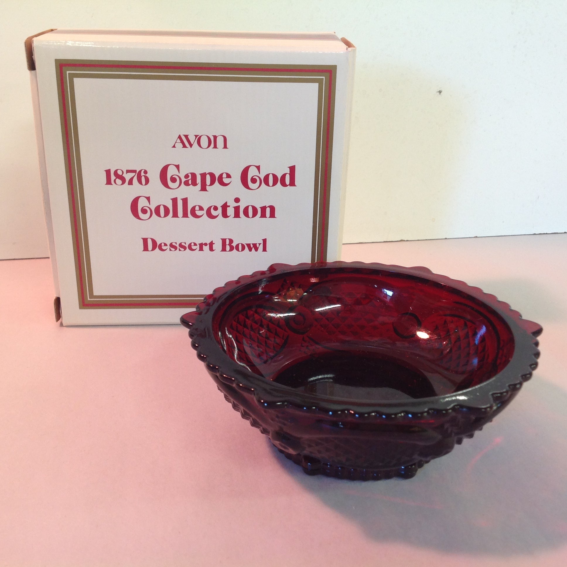 Vintage 1982 Avon 1876 Cape Cod Collection Dessert Bowl Red Sandwich Glass Unused with Original Box