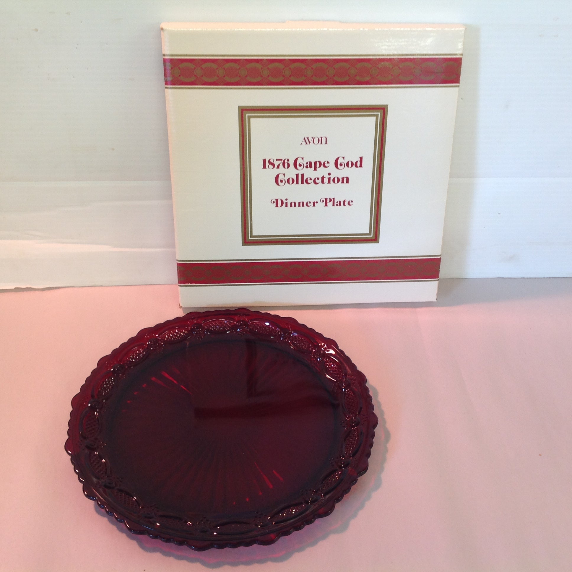 Vintage 1982 Avon 1876 Cape Cod Collection Dinner Plate Red Sandwich Glass Unused with Original Box