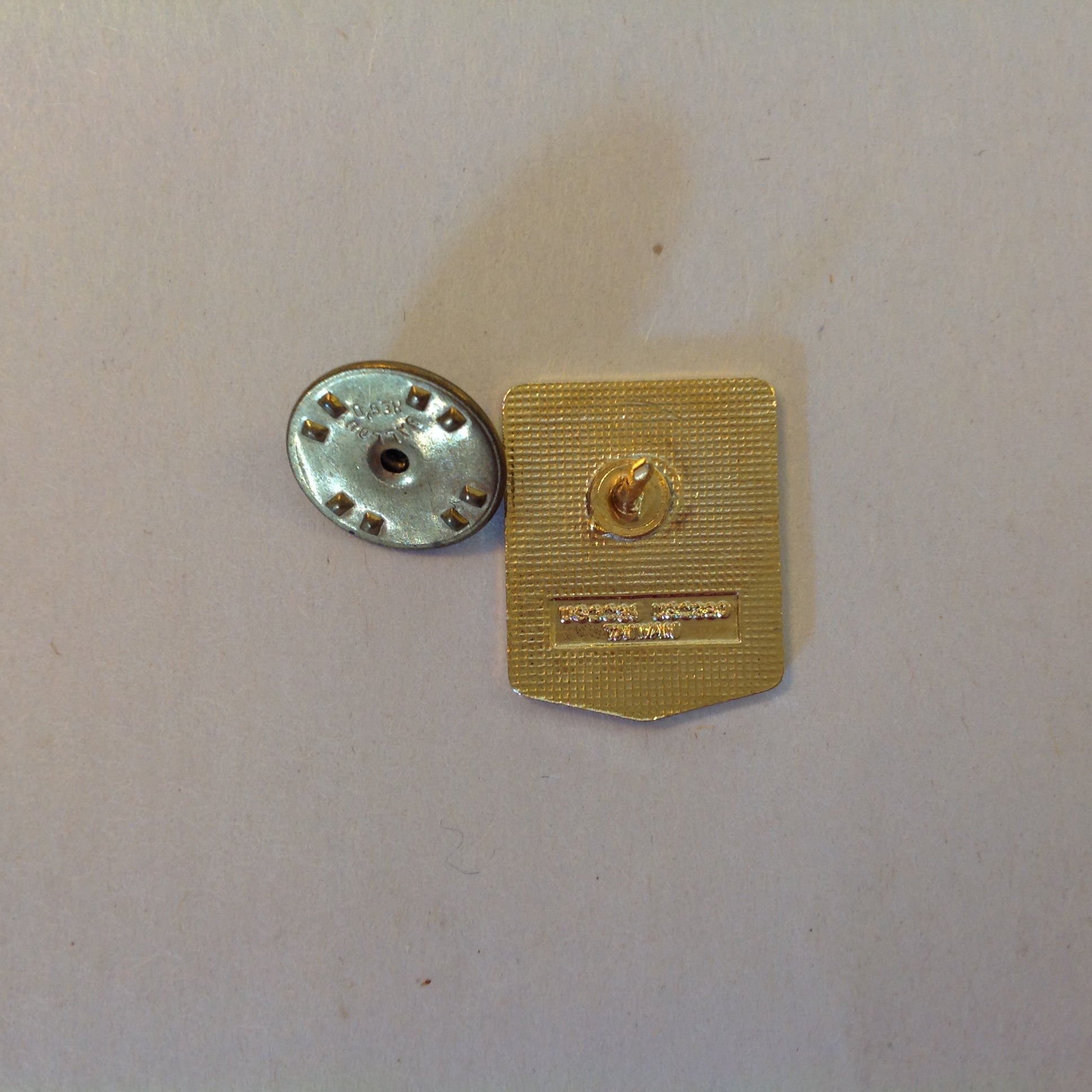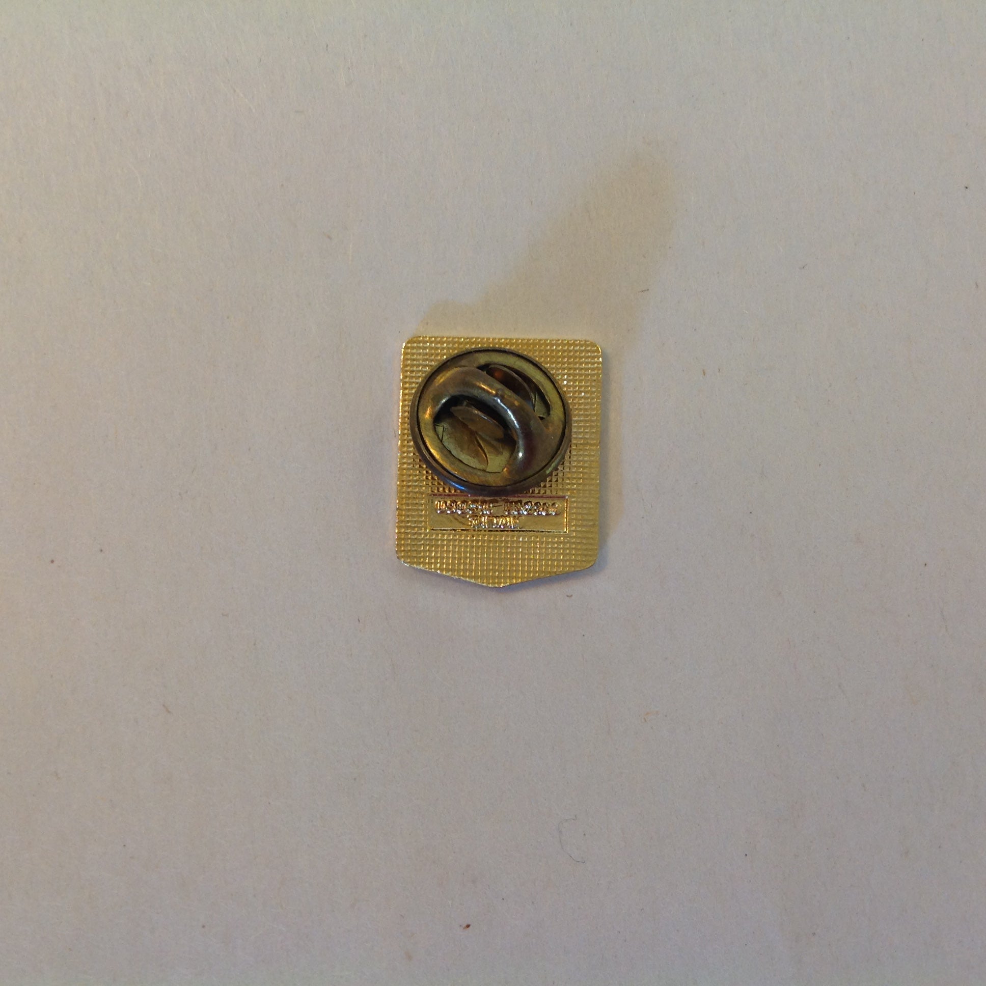 This is a vintage used item, in good used condition, with light signs of age/wear; there is mild rubbing to surface of pin, mild wear along/about rear face. Overall quality is good; clean, smooth/glossy, with excellent preservation of color/sheen and graphics still bold/vivid. There are no excessive nicks, chips, dents, divots, scrapes, scratches, scuffs, cracks, breaks, stains, residue or repairs.