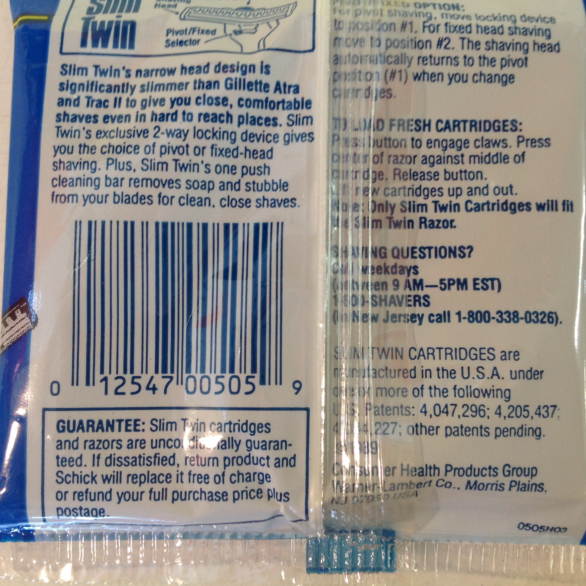 Vintage 1989 NOS SCHICK Slim Twin 10 Twin Blades Cartridges Pack Unopened Unused
