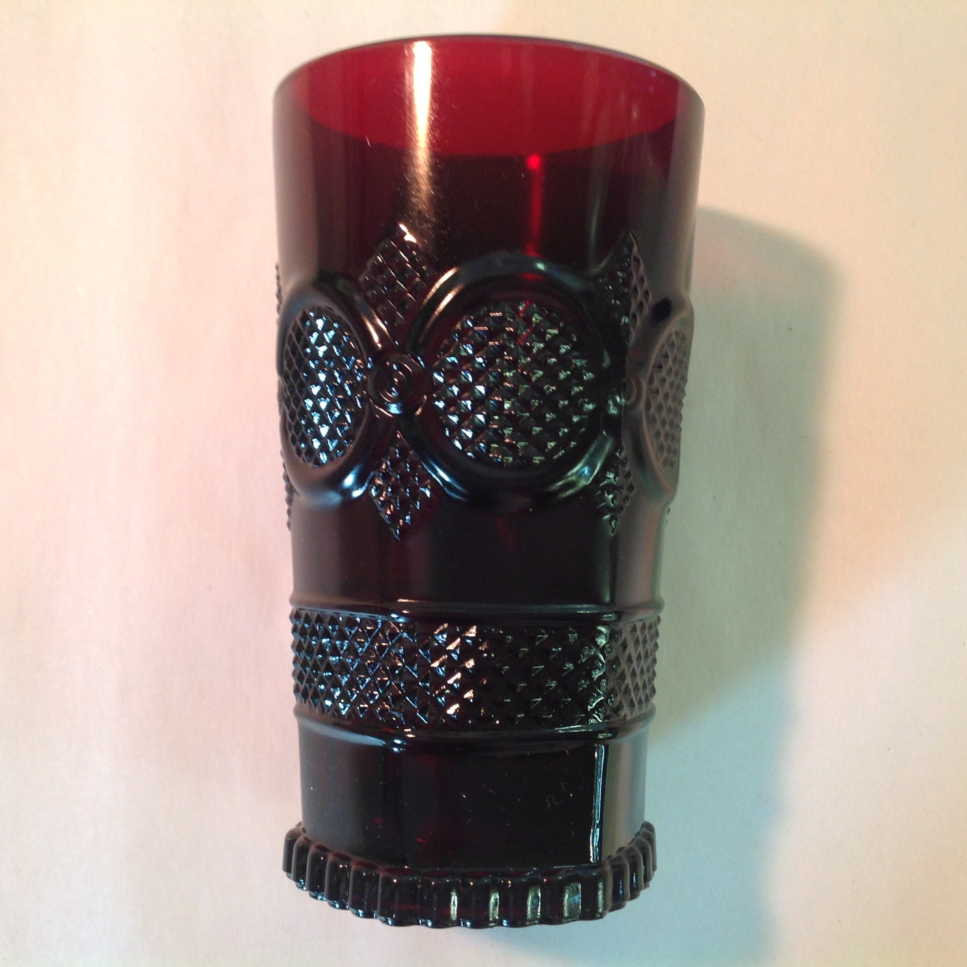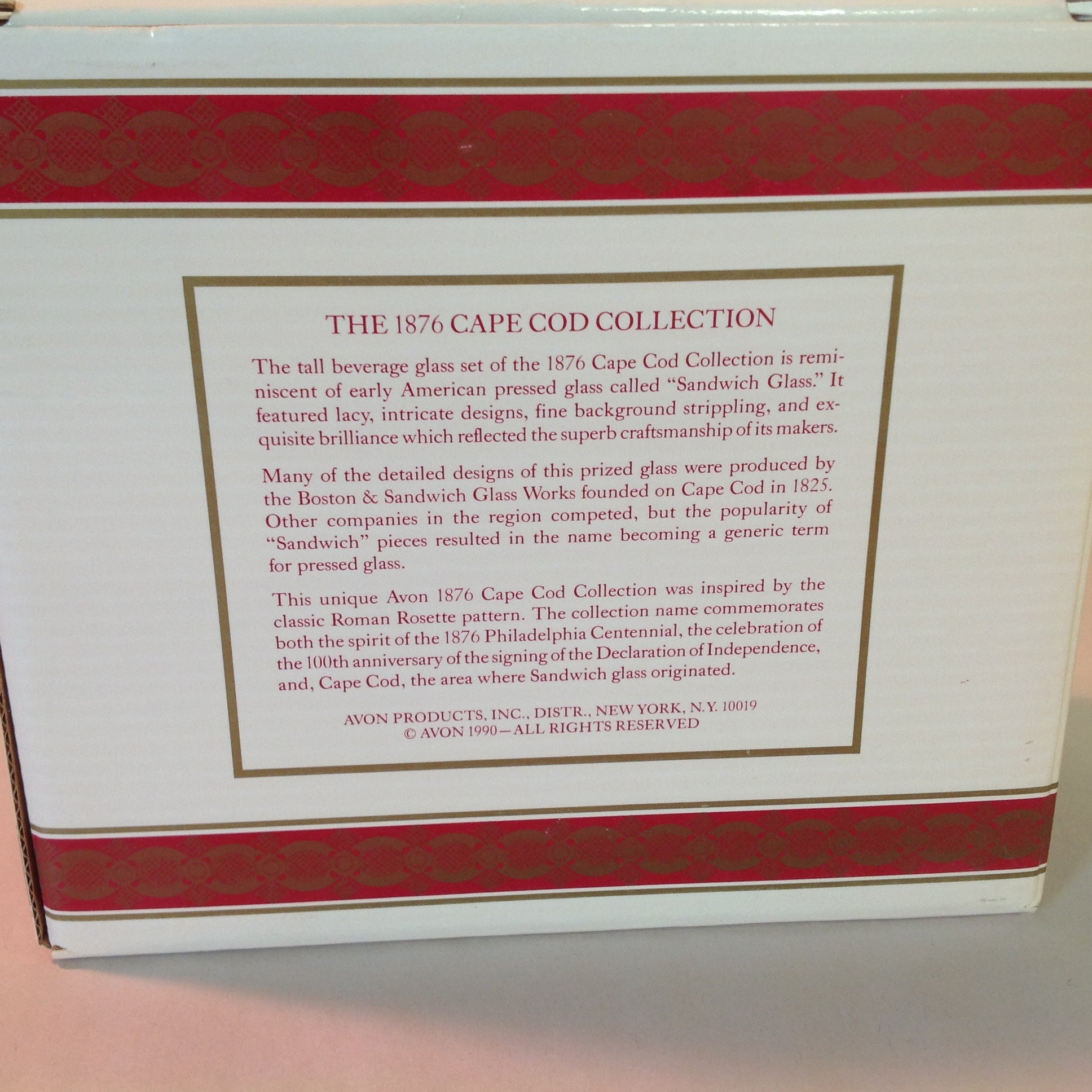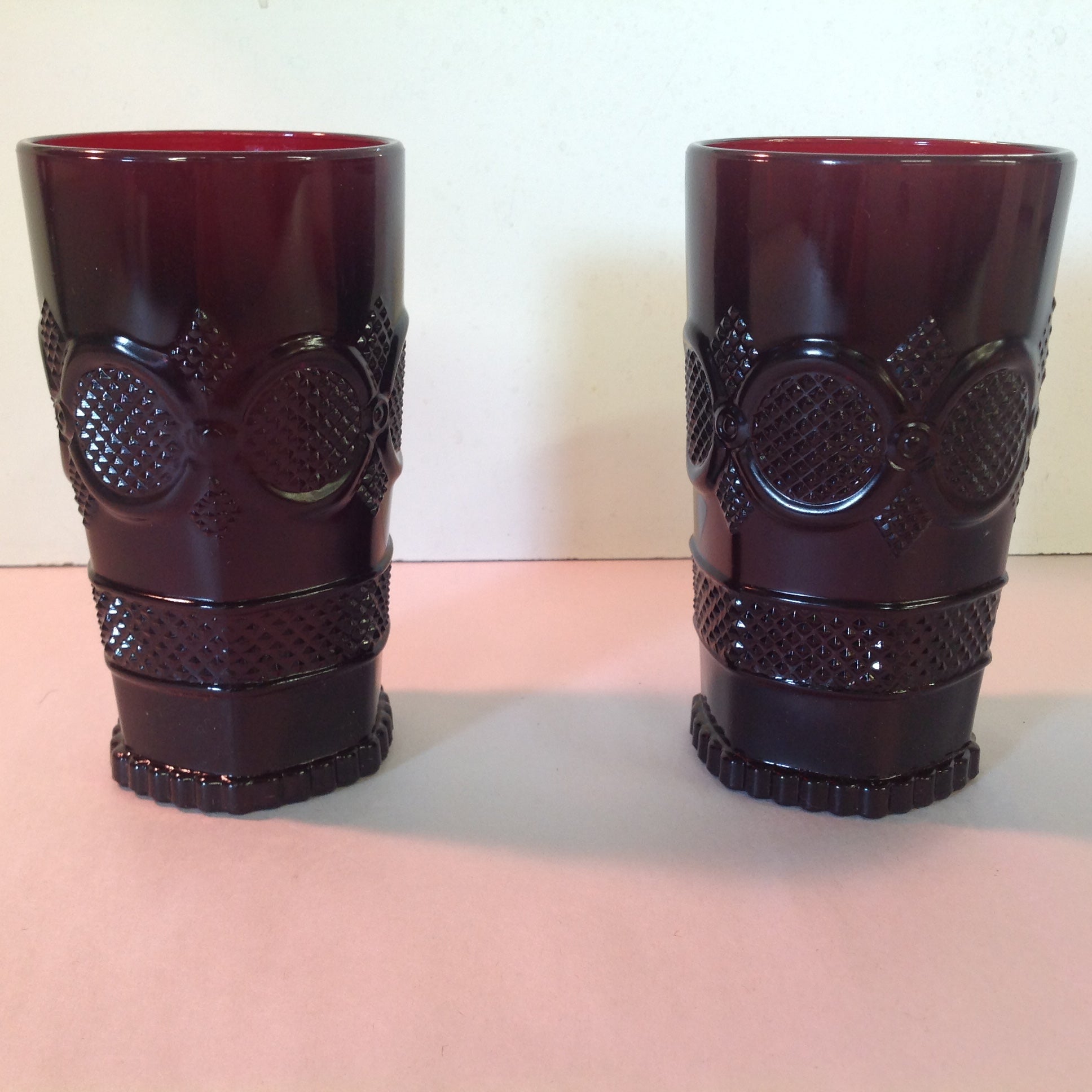 Vintage 1990 Avon 1876 Cape Cod Collection Tall Beverage Glass Set Pair Red Sandwich Glass Unused with Original Box