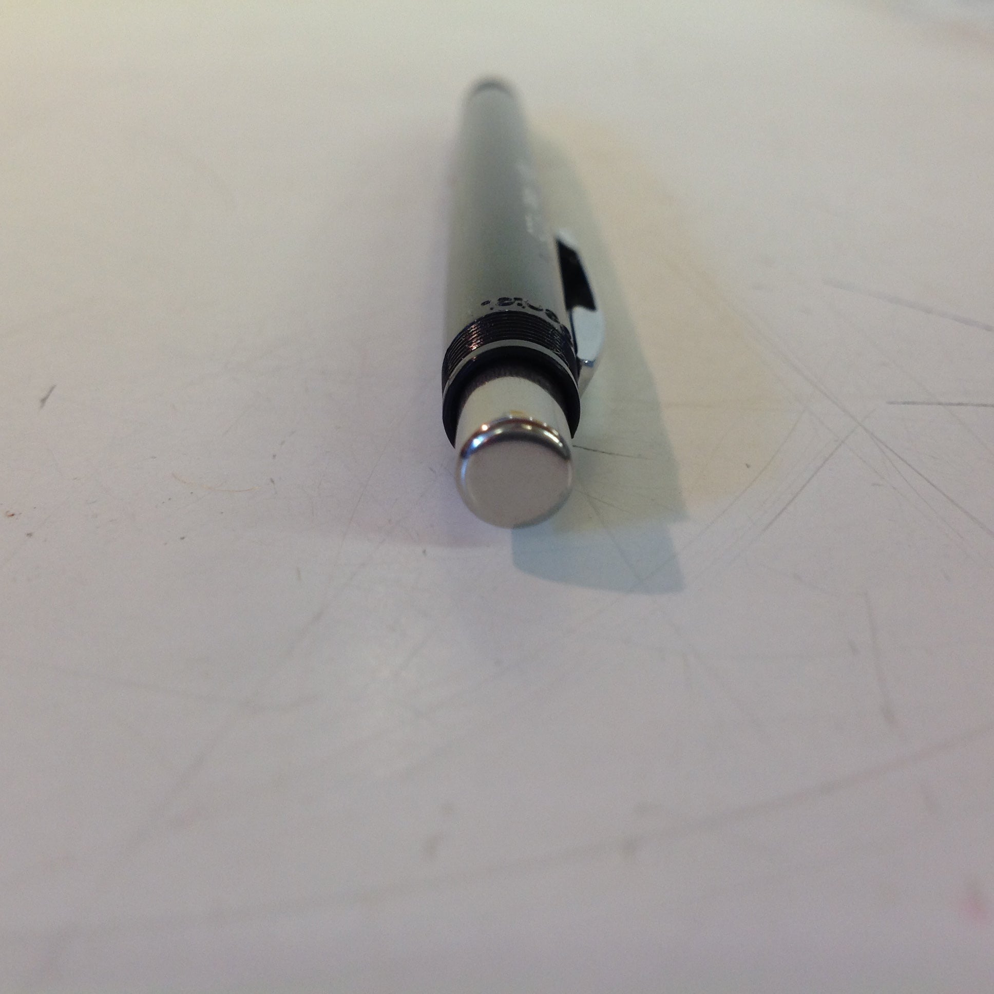 This is a vintage N(ew) O(ld) S(tock) item, in good unused condition; there is light rubbing to surface of pencil. Overall metal/plastic quality is good, smooth/clean, with excellent retention of sheen and graphics still sharp/bright; lead dispenser mechanism is still in good working order. There are no excessive nicks, dents, divots, cracks, breaks, stains, residue or repairs. The pencil measures approx 5.25" tip-to-tip and .25" wide.